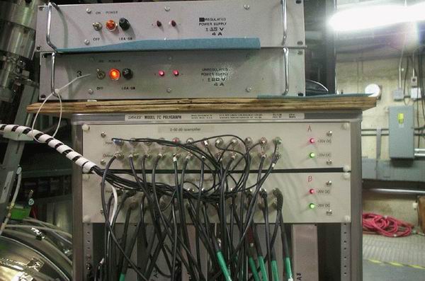 The outputs of the amplifiers were then sent to 24 iso-amplifiers (figure3) and then to the digitizers (Joerger TR612). The iso-amplifiers had also floating power supplies; the cables from these amplifiers to the digitizers were grounded on the CAMAC side (the iso-amplifiers were installed just to ground the cables before and after the amplifiers in different point, that is, before to MST and after to the CAMAC).