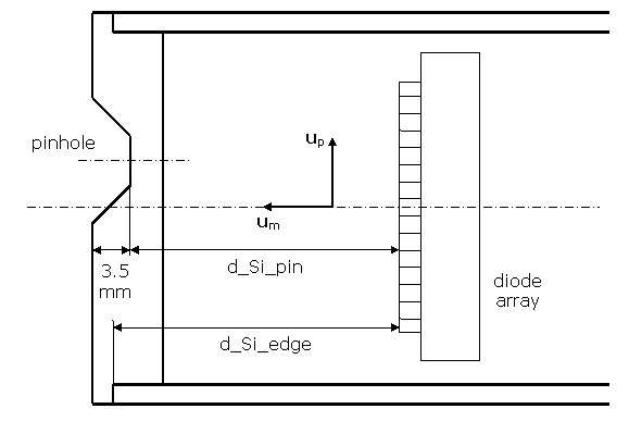 Definitions of the pinhole and detector positions. The distance detector-pinhole, d_Si_pin, is the distance of the detector from the edge of the probe - 0.50 mm.
