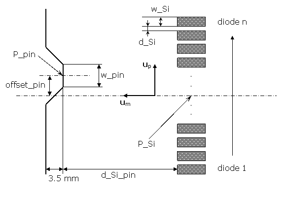 Definitions of the pinhole and detector positions. The distance detector-pinhole, d_Si_pin, is the distance of the detector from the edge of the probe - 0.50 mm.