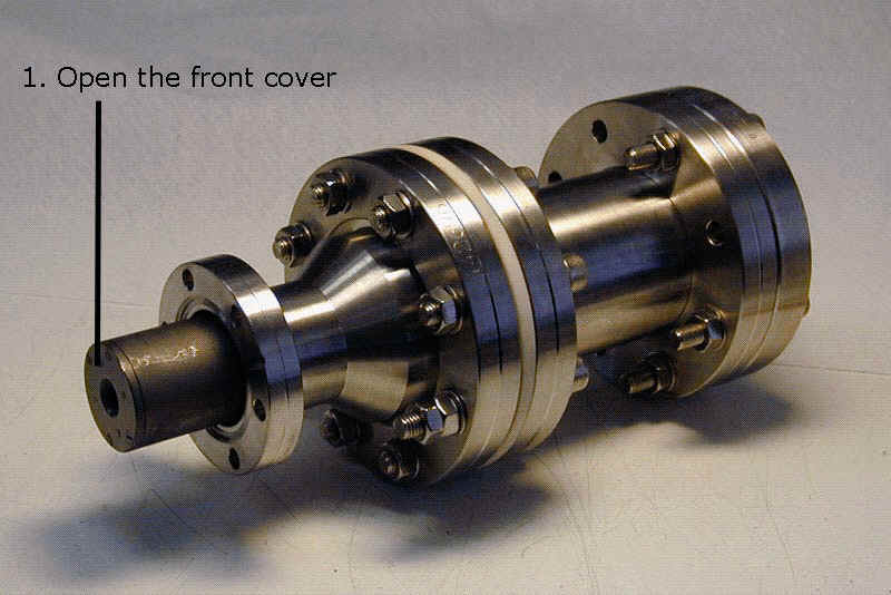 To install the SXR2 probe you should perform a simple check of the orientation. First open the front cover (there are 4 screws). Be careful with the cover because on the back there is the curved Be filter.